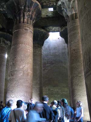| This Ptolemaic temple to the god Khnum in Esna is a hypostyle hall with 24 columns (flat ceiling supported by columns) -- I favored small temples like this one. |