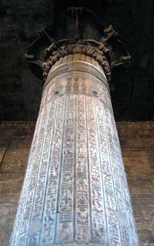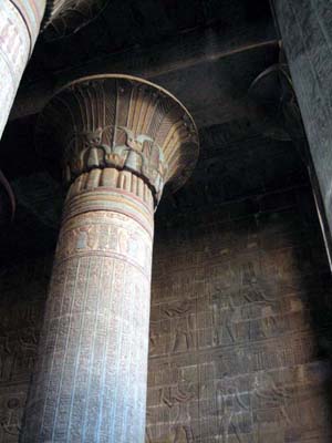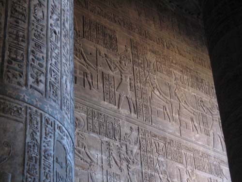 | Inside the temple of Khnum, beautiful carvings with evidence of color |